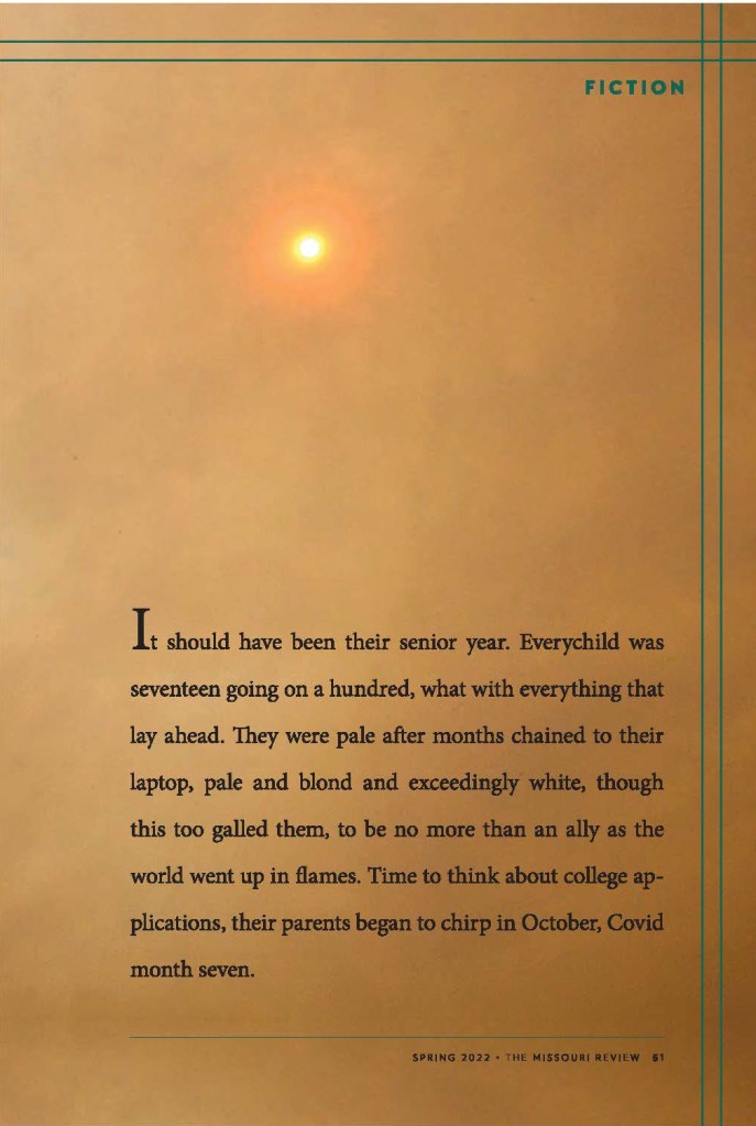 Winner of a Pushcart Prize and the 2021 Jeffrey E. Smith Editor’s Prize in fiction from The Missouri Review.